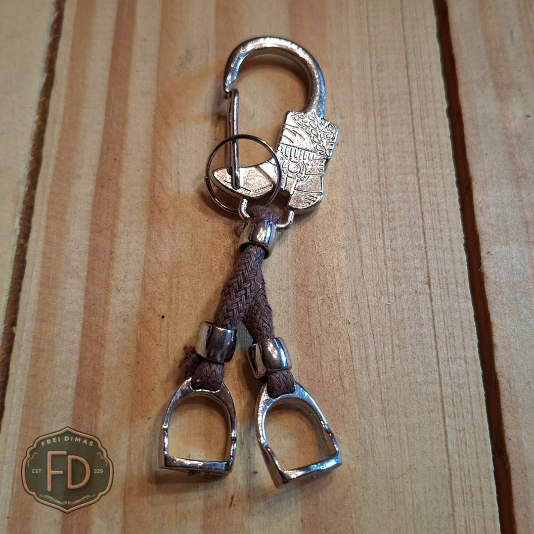 Leve com você a representação fiel da sua paixão pela montaria. Este chaveiro em formato de estribo é uma miniatura detalhada que homenageia a vida sobre a sela. Feito para quem sabe que o melhor lugar do mundo é entre as orelhas de um cavalo, ele é o acessório perfeito para identificar suas chaves com o estilo e a rusticidade que a vida no campo exige.