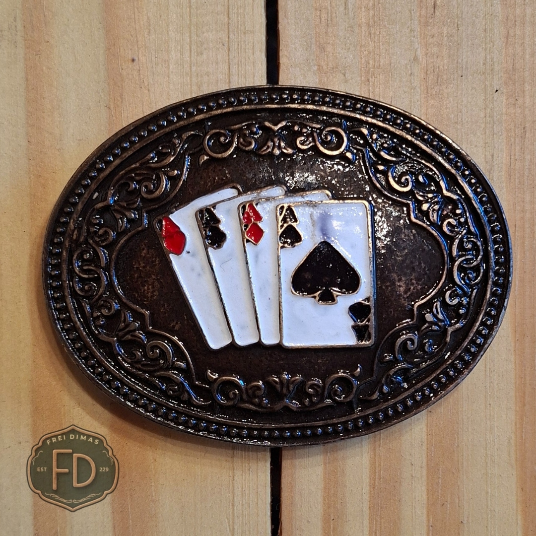 O Trunfo do Seu Estilo Para quem joga para ganhar, a Fivela Baralho é o acessório que faltava. Com um design que destaca os quatro naipes ou a icônica mão de “Royal Flush”, esta peça une a estética clássica dos cassinos ao estilo country/urbano. Perfeita para quem busca um visual autêntico, com acabamento de alto brilho e detalhes gravados com precisão.